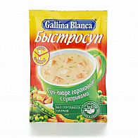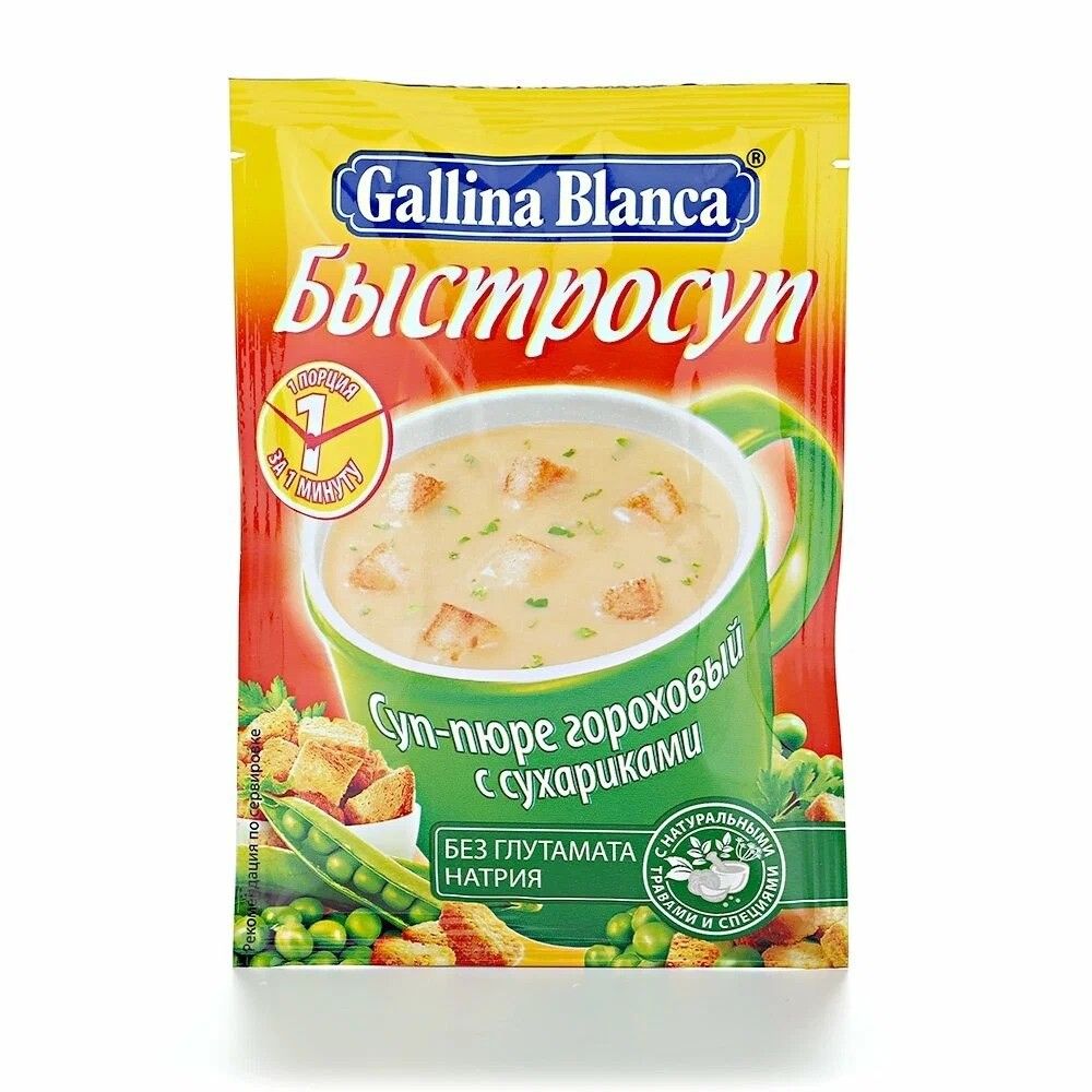 Крем-супы Gallina Blanca включают натуральные травы и специи, без добавления глутамата натрия, ГМО, синтетических красителей, искусственных консервантов и пальмового масла. Инновационная упаковка 2 в 1 позволяет добавить гренки по своему вкусу в начале вместе с супом или в конце, чтобы они оставались хрустящими. Готово за 1 минуту! Продукт может содержать следы сои, яиц и рыбы.