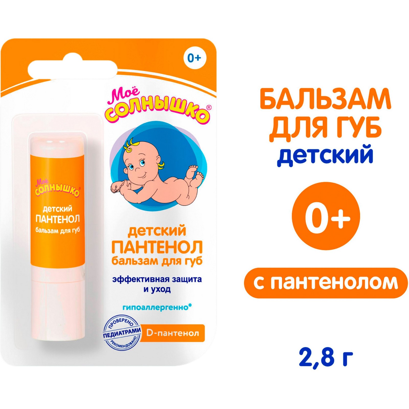 Бальзам подходит для малышей с первых дней жизни и является универсальным средством для защиты, ухода и восстановления детской кожи губ в любое время года.Состав бальзама содержит комплекс D-пантенола, витамина E, масло Ши, который быстро восстанавливает сухую кожу, обеспечивает дополнительное увлажнение и полноценный уход, а также эффективно защищает и предупреждает обветривание губ, появление сухости и шелушения. Бальзам рекомендован педиатрами для профилактики заед. Не содержит отдушек и красителей.