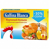 Куриный бульон теперь и с пониженным содержанием соли! Новый кубик разработан специально для тех, кто следит за своим рационом питания. Теперь вам не нужно отказываться от традиционного вкуса ваших супов - новая рецептура кубика Gallina Blanca заботится о вашем здоровье, делая ваши блюда такими же вкусными и ароматными, как прежде. Контролировать количество потребляемой соли стало гораздо проще и приятнее с Gallina Blanca!