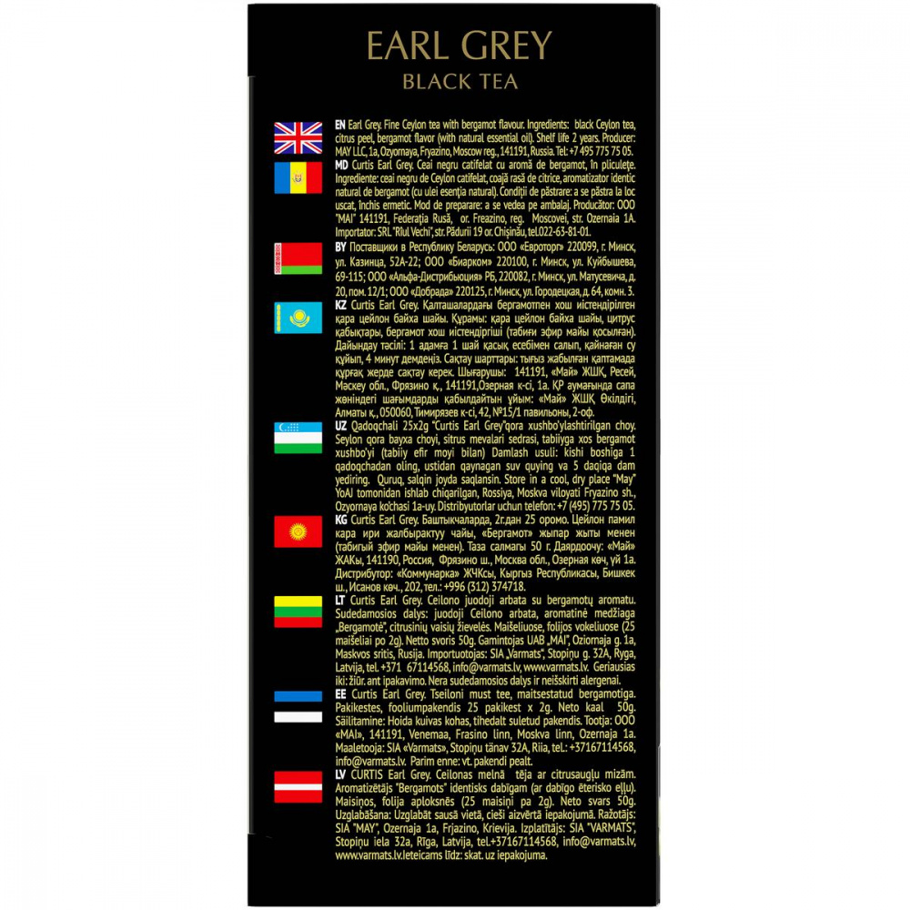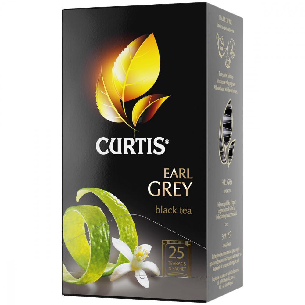 Чай Curtis "Earl Grey" – цейлонский чёрный чай с ароматом бергамота. Приятный оттенок настоящего Earl Grey и праздничные ароматы цитрусовых заряжают жизненной энергией, дарят легкость и отличное настроение.