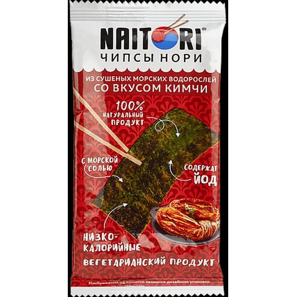 Чипсы нори Naitori, из сушеных морских водорослей со вкусом кимчи, 3 г