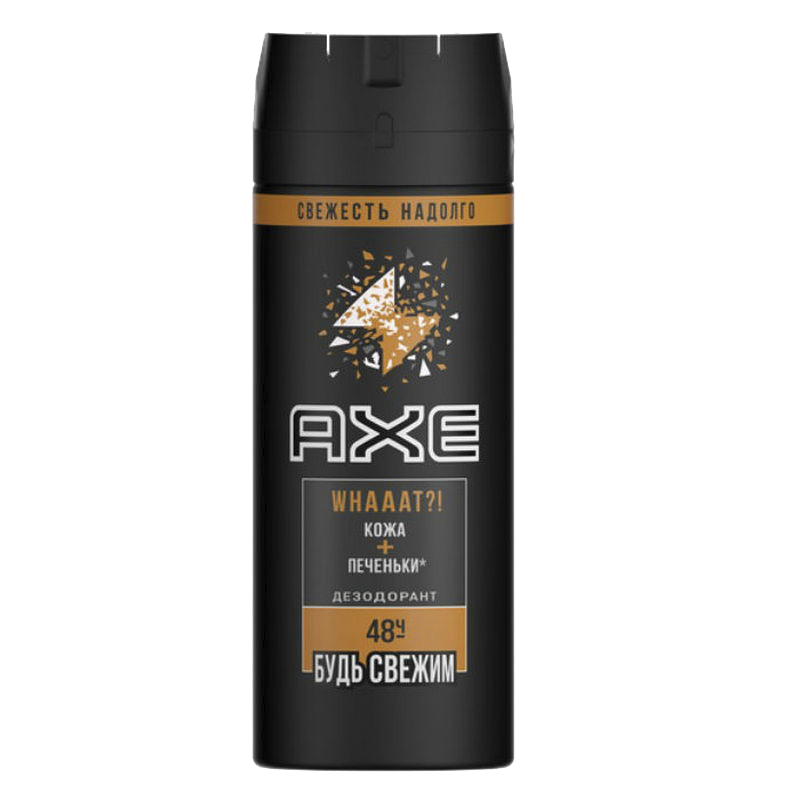 Взрывной аромат новинки Axe "Кожа и печеньки" сталкивает между собой дерзкий аромат брутальной кожи и теплый аромат домашнего печенья. Axe кожа и печеньки - неожиданно, но это работает! Дезодоранты Axe имеют антибактериальную формулу и препятствуют появлению неприятного запаха, но в то же время не содержат солей алюминия.