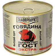 Говядина тушеная Главпродукт "Экстра", высший сорт ГОСТ, 525 г