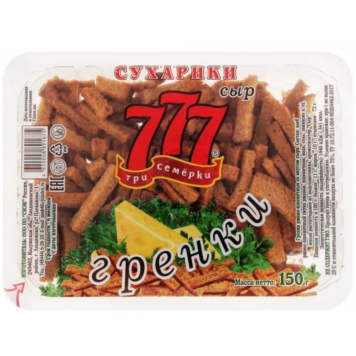 Гренки 777- это продукция только высокого качества. Хлеб производится исключительно из натурального сырья, выпекается в нашей собственной пекарне, проходит длительный процесс обработки и строгого контроля.