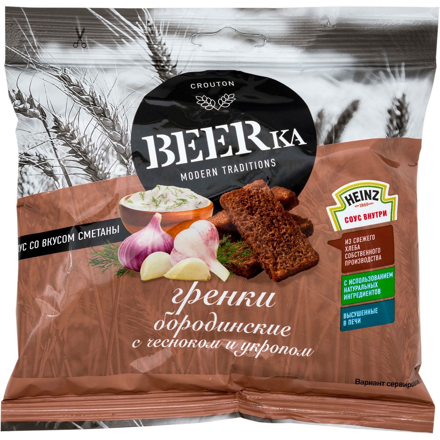 Гренки BEERka "Чеснок и сметанный соус", 60 г.