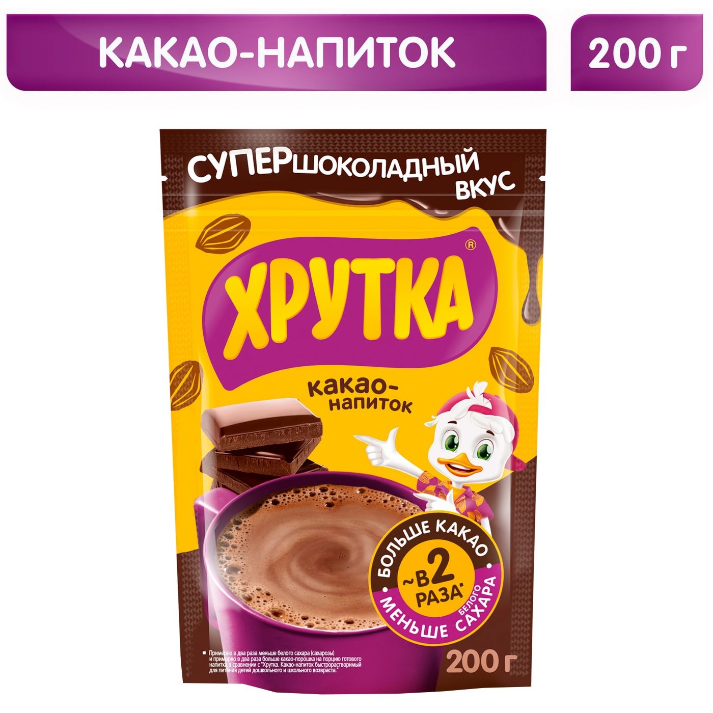 ВСТРЕЧАЙТЕ НОВИНКУ: какао-напиток ХРУТКА! Начать утро с новым какао-напитком ХРУТКА – так вкусно и увлекательно! Быстро и удобно: добавьте 2 чайные ложки какао ХРУТКА в стакан молока – и вкусный напиток для завтрака готов! В молоке содержится кальций, необходимый для крепких и здоровых костей. А с нежным шоколадным вкусом какао-напитка ХРУТКА пить молоко вкуснее. А еще какао-порошок от природы является источником магния, железа и фосфора. C ХРУТКА весёлый завтрак за минутку!