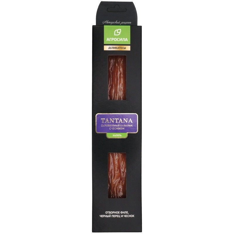 В составе филе цыпленка-бройлера, сушеный чеснок, экстракты специй (черный перец, кориандр, чеснок). Все это придает мясном деликатесу неповторимый вкус и аромат. Казылык TANTANA – Халяльный продукт высокого качества.