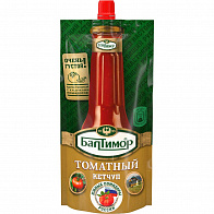 Кетчуп Балтимор "Томатный" - густой томатный кетчуп с кусочками отборных помидоров. Насыщенный томатный вкус и только натуральные ингредиенты. Свойства: Без консервантов. Без ароматизаторов. Без ГМО и красителей. С кусочками помидоров. Содержит фермерские ингредиенты. Состав: вода, томатная паста, сироп глюкозно-фруктозный, уксус столовый, кусочки томатов, соль, цитрусовые волокна, сок лимонный концентрированный, перец чёрный.