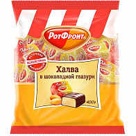 Золотистая арахисовая халва от фабрики "Рот Фронт" с насыщенным ореховым вкусом, покрытая темной шоколадной глазурью. Слоистая, чуть рассыпчатая структура халвы легонько хрустит на зубах, раскрывая сладость и аромат арахиса. Легкие ванильные нотки придают вкусу нежности, темная, чуть терпкая шоколадная глазурь прекрасно дополняет нежную сладость халвы.