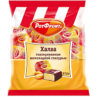 Золотистая арахисовая халва от фабрики "Рот Фронт" с насыщенным ореховым вкусом, покрытая темной шоколадной глазурью. Слоистая, чуть рассыпчатая структура халвы легонько хрустит на зубах, раскрывая сладость и аромат арахиса. Легкие ванильные нотки придают вкусу нежности, темная, чуть терпкая шоколадная глазурь прекрасно дополняет нежную сладость халвы.