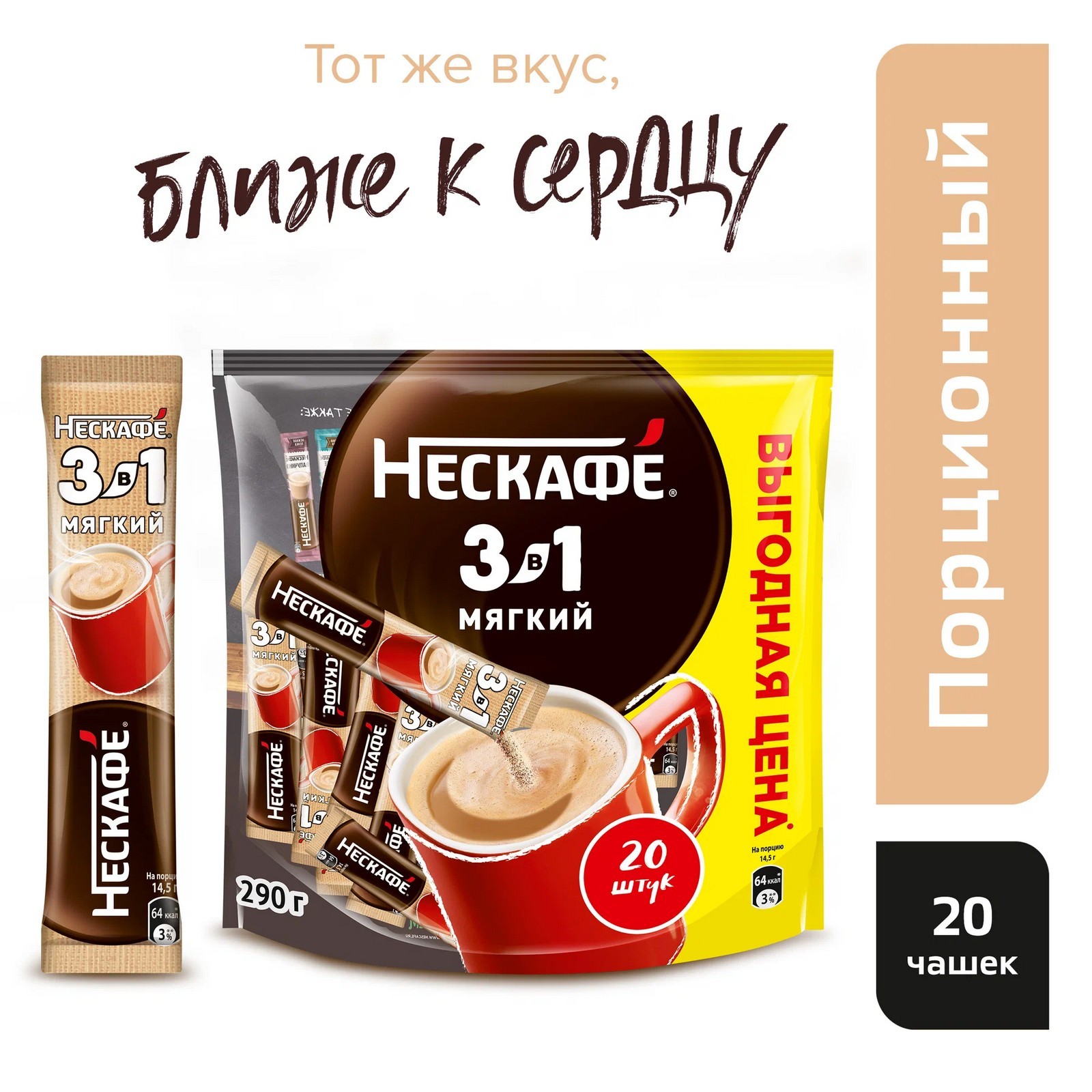Nescafe 3 в 1 Мягкий – кофейно-сливочный напиток, в состав которого входят высококачественные ингредиенты: кофе Nescafe, сахар, сливки растительного происхождения. Каждый пакетик Nescafe 3 в 1 подарит вам идеальное сочетание кофе, сливок, сахара!