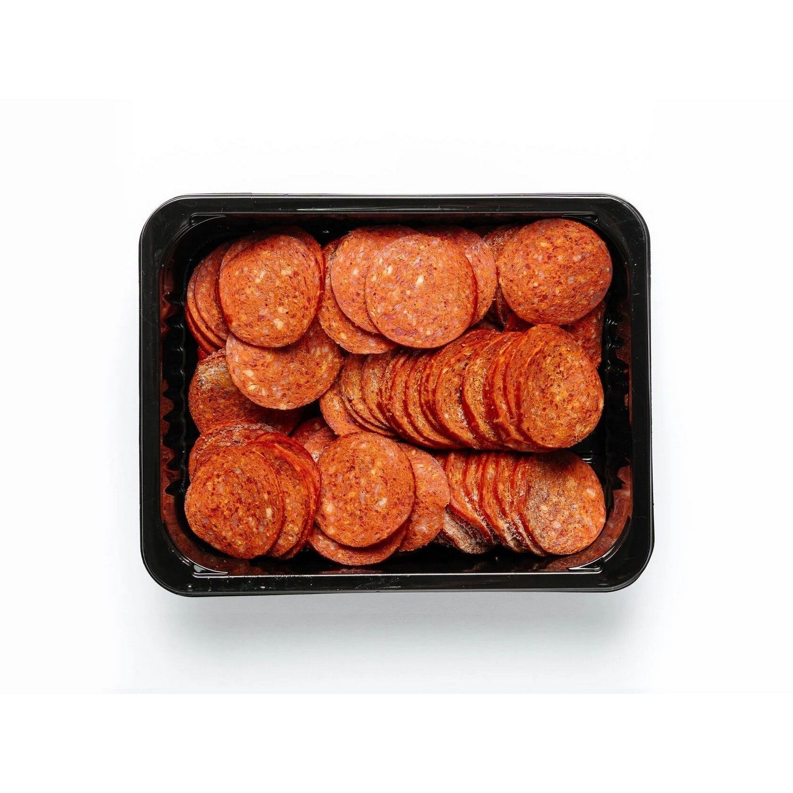 Колбаса сырокопченая Казанские деликатесы "Пепперони Халяль", замороженная, нарезка, 500 г. Сервировочная нарезка - слайсы правильной круглой формы. Состав: Говядина, мясо кур механической обвалки, мука пшеничная, посолочная смесь (поваренная соль, фиксатор окраски: нитрит натрия), комплексная смесь специй. Аллергены: Содержит растительное волокно и черный перец.