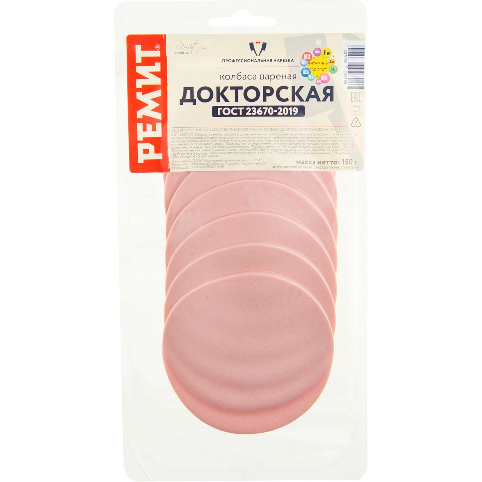 Колбаса вареная Ремит "Докторская", нарезка, 150 г