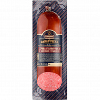 Копченые колбасы серии "Баварушка" отличаются уникальным копчено-мясным вкусом и ароматом душистых пряностей. При изготовлении копченых колбас "Баварушка с грудинкой" кусочки грудинки обдают дымком и добавляют в фарш. Колбасу держат над буковой щепой, которая пропитывает ее своим ароматом. Она получается с копченой корочкой снаружи и с копченой грудинкой внутри. Поэтому в "Стародворье" такую колбасу ласково называют "Баварушка". Колбаса варено-копченая "Баварушка с грудинкой" – колбаса с рубленной мясной структурой и кусочками сочной грудинки, подкопченными на натуральной щепе, которые придают особый аромат.