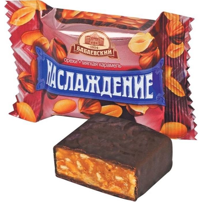 Конфеты "Наслаждение" – мягкие карамельные конфеты с кусочками арахиса и фундука, покрытые тонкой шоколадной глазурью. Тягучая карамель тает во рту, обнажая хрустящую ореховую россыпь. Сытные сладкие квадратики, отлично подойдут, чтобы подкрепиться и зарядиться силами для новых идей и свершений. Прекрасно сочетаются с кофе и длинным списком бумажных дел.