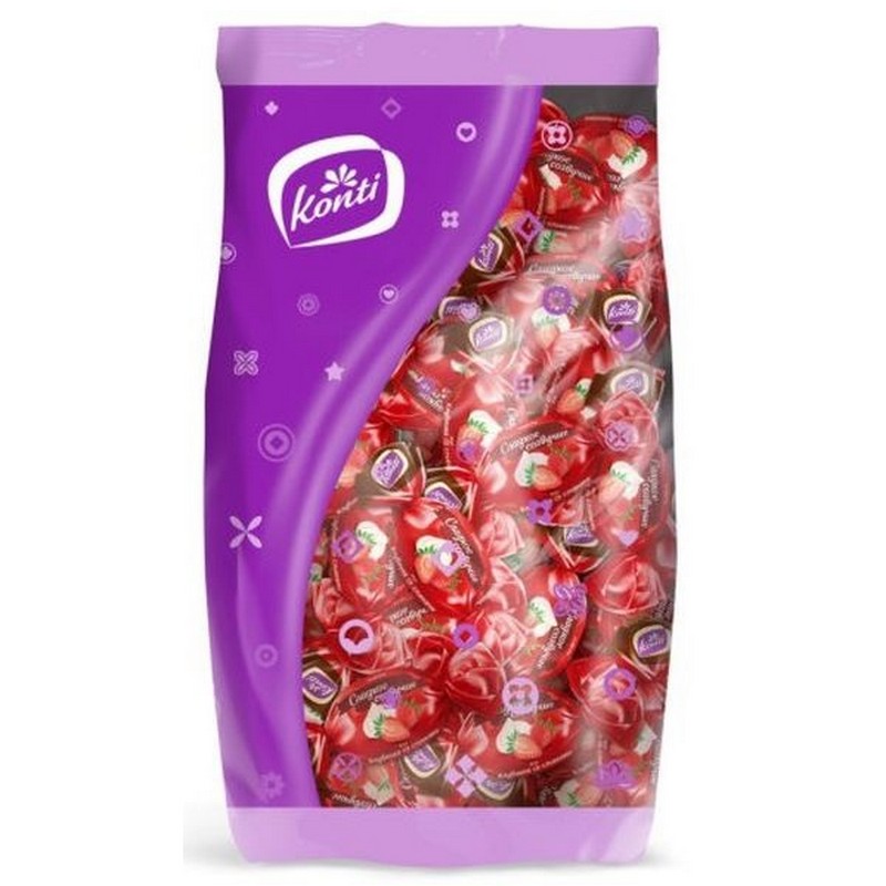 Оригинальные глазированные конфеты, состоящие из дуэта нежного суфле и ароматного желе. Сочетание вкуса клубники и нежных сливок уравновешивает вкусовую палитру легкостью и прозрачностью, подчеркивая элегантный и гармоничный вкус.