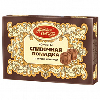 Сливочная помадка со вкусом шоколада от фабрики "Красный Октябрь" - нежная текстура классической сливочной помадки, дополненная терпковатым вкусом какао. Шоколадного цвета "розочки" помадки упакованы в индивидуальные ячейки традиционной узорной коробочки. Тающая мягкость помадки, нежный шоколадно-сливочный вкус с нотками ванили и коньяка - прекрасное дополнение к чаю и кофе.