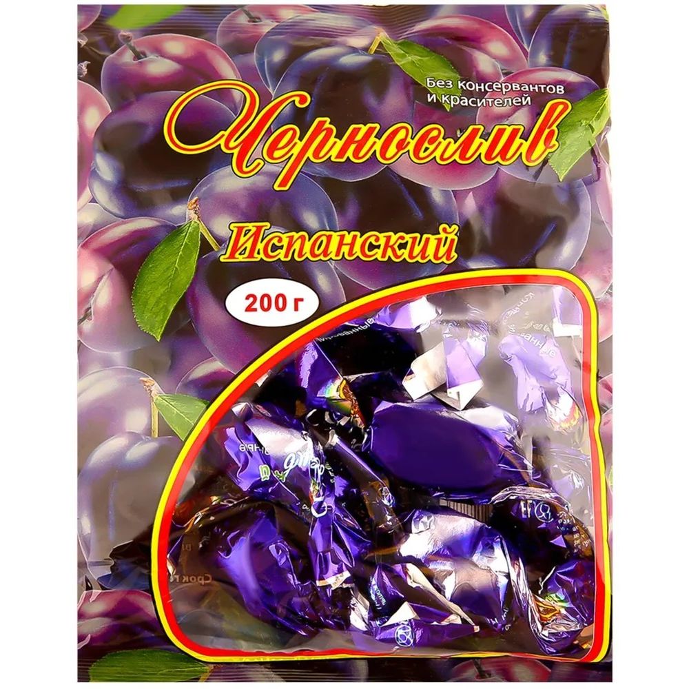 Конфеты Новгородская кондитерская фабрика "Чернослив Испанский", 200 г - натуральный нежный чернослив в шоколадной глазури. Содержит много витаминов. Для производства используются натуральные ингредиенты высшего качества. Состав: Чернослив без косточки, глазурь кондитерская (сахар, заменитель какао-масла лауринового типа (масло растительное), какао-порошок, эмульгатор: соевый лецитин, ароматизатор: ванилин), сахар.