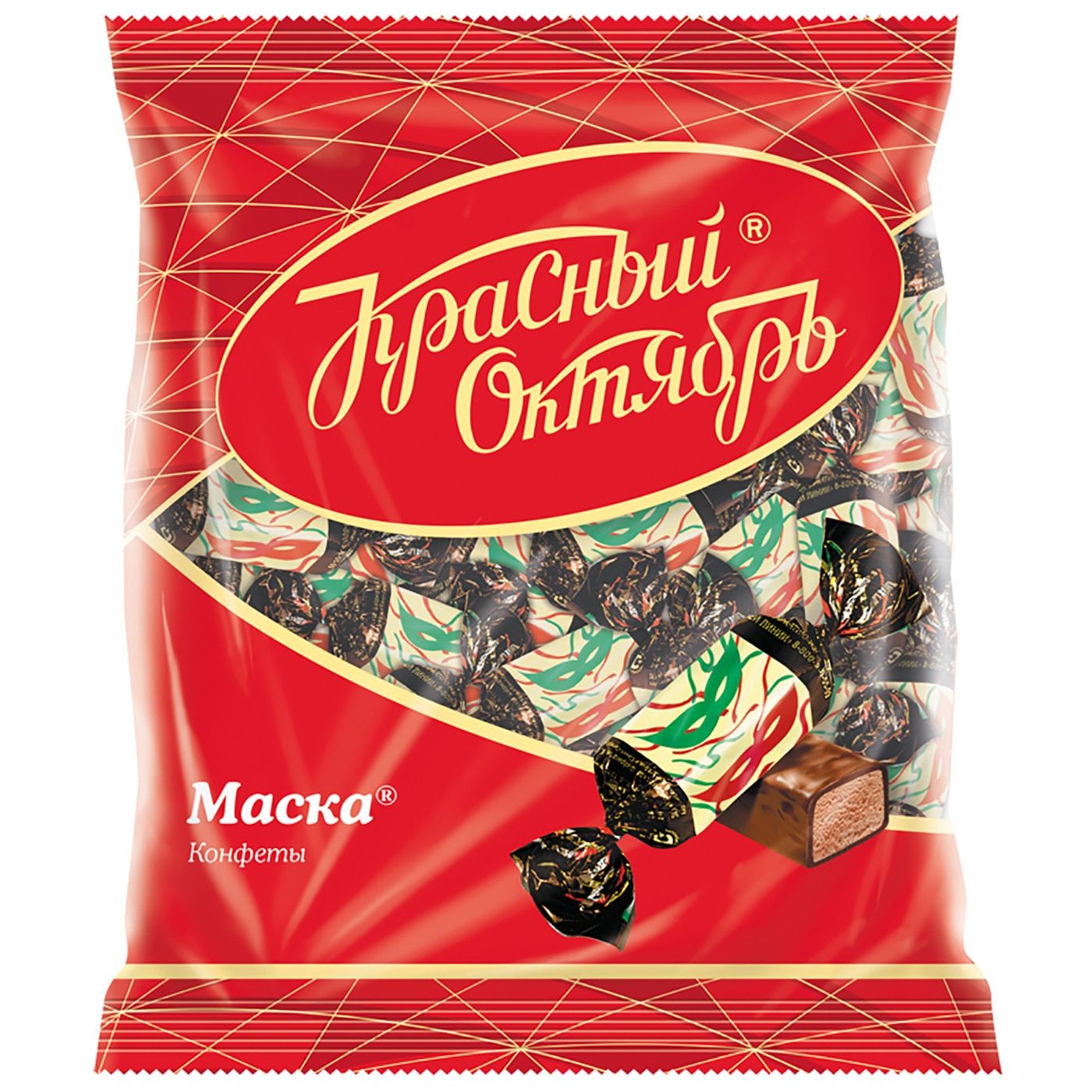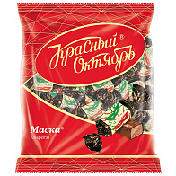 Одна из самых праздничных конфет фабрики Рот Фронт – Маска. Завсегдатаи новогодних наборов. Тающее бархатистое пралине с добавлением какао, глазированное шоколадом и знаменитый карнавальный фантик. С детства знакомый вкус и тонкий шоколадно-ореховый аромат этих конфет с годами ничуть не изменился!