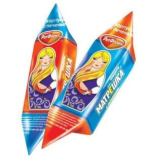 Конфеты неглазированные с печеньем. Внушительный размер и красивая обертка делают конфеты "Матрёшка" отличным сувениром.