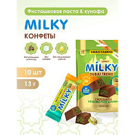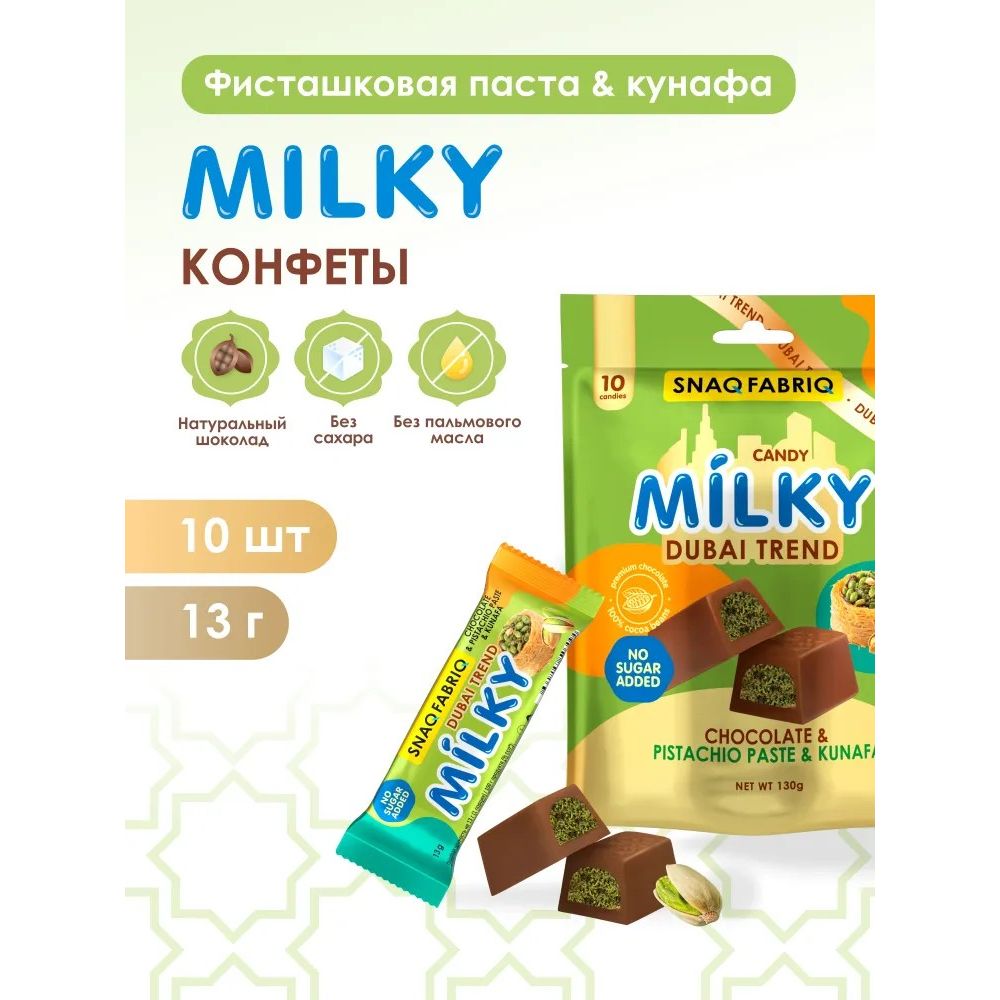 MILKY DUBAI TREND – новинка, вдохновленная всемирно известным Дубайским шоколадом. Шоколадные конфеты без сахара - идеальное сочетание сладости и заботы о здоровье. Каждая конфета произведена с любовью и вниманием к деталям. Мы используем только самые качественные ингредиенты, чтобы обеспечить непревзойденный вкус и текстуру. Наша команда экспертов разрабатывает самые невероятные вкусовые сочетания, чтобы предложить вам незабываемое путешествие в мир полезных сладостей. MILKY CANDY от SNAQ FABRIQ - идеальное лакомство для тех, кто хочет наслаждаться сладостью без ощущения вины. Благодаря использованию низкокалорийных подсластителей и клетчатки, мы создали вкусняшки, которые порадуют вас нежным, утонченным вкусом, не нанося вреда вашему здоровью. MILKY CANDY представлены в нескольких вариациях, чтобы удовлетворить самые изысканные вкусы. Каждая конфета находится в индивидуальной упаковке, чтобы сохранить свежесть. Независимо от того, ищете ли вы полезный подарок или просто хотите порадовать себя, наши шоколадные конфеты без сахара - это превосходный выбор. Мы гарантируем, что каждый кусочек принесет вам не только удовольствие, но и радость от здорового образа жизни. Разрешите себе насладиться великолепным вкусом MILKY CANDY уже сегодня!.