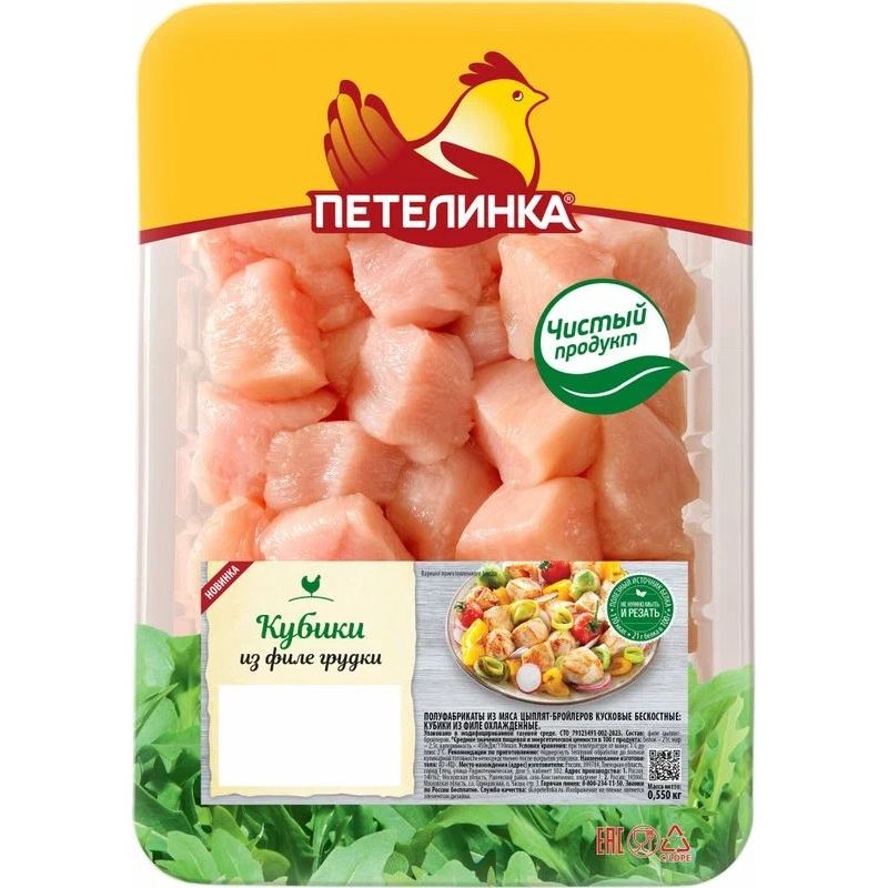 Кубики из филе грудки цыпленка-бройлера Петелинка, охлажденные, 550 г