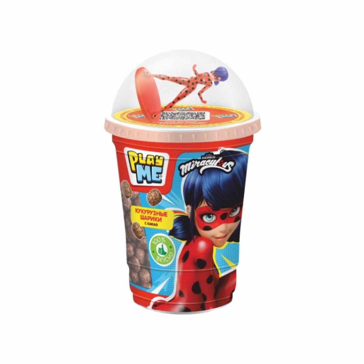 Прозрачный пластиковый стаканчик PLAY ME. Сверху на стаканчик надевается пластиковая крышка под которую ставится 3Д коллекционная игрушка. 6 видов игрушек. Внутри - кукурузные шарики.