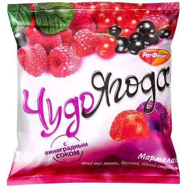 Мармелад Рот Фронт Чудо-ягода малина-брусника-черная смородина 250 г. Мармелад Чудо-Ягода от фабрики Ясная Поляна. Сочный мармелад с ароматом малины, клюквы и черной смородины в посыпке из мелкого сахара. Крупные купола прозрачного мармелада в щедрой сахарной посыпке. Сочные, будто прохладные вкусы малины, клюквы и черной смородины, нежная податливая текстура и легкий хруст сахарных крупинок. Отличный вариант для сладкого перекуса, который можно дополнить любимой газировкой, лимонадом или горячим чаем. Производитель: ОАО "Ясная Поляна". Ароматный разноцветный мармелад Чудо-Ягода со вкусами лесных ягод. Крупные купола прозрачного мармелада в щедрой сахарной посыпке. Отличный вариант для сладкого перекуса, который можно дополнить любимой газировкой, лимонадом или горячим чаем.