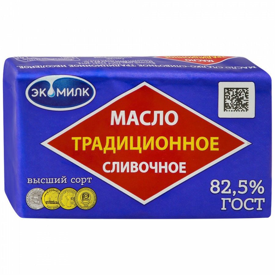 Масло сливочное "Традиционное" ЭКОМИЛК 82,5% отличается приятным сладко-сливочным вкусом, знакомым с детства. Натуральный продукт производится из пастеризованных сливок высокой жирности по традиционным рецептам. Масло ЭКОМИЛК мягкое по консистенции, не крошится при нарезке. Оно отлично подходит для создания бутербродов, приготовления каш, мясных и овощных блюд, соусов.