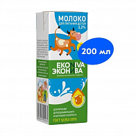 Молоко ультрапастеризованное ЭкоНива, для питания детей с 3-х лет, 3,2%, 200 мл