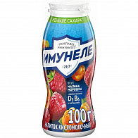 Напиток кисломолочный Имунеле 100 г. Йогурт питьевой Имунеле содержит уникальный сбалансированный комплекс полезных лактобактерий, витаминов и минералов. Пробиотик L.Casei нормализует микрофлору кишечника и защищает ее от микробов. L.Rhamnosus дополняет его действие, укрепляя иммунитет. Витамины E и D3 помогают организму сопротивляться инфекциям и препятствуют старению иммунной системы. Цинк противостоит простудам, а йод придает сил. Институт питания РАМН рекомендует Имунеле для ежедневного применения, особенно в холодное время года.