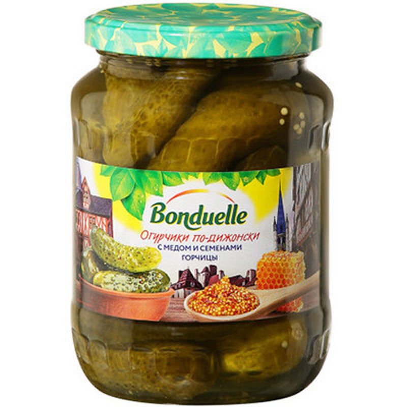 Новый продукт Bonduelle "Огурцы по-дижонски с медом и семенами горчицы" – такого вкуса вы не найдете больше нигде! Эти огурцы не простые – они с французским характером. Изысканные, с игривым вкусом и влюбляющие в себя безоговорочно. Семена дижонской горчицы подарили огурцам легкую остроту и пряность, а мед – нежную сладость. Подавайте к мясу или к овощам, добавьте в салат. Даже самые привычные блюда с этими огурчиками раскроются с незнакомой для вас стороны. Состав: огурцы, вода питьевая, сахар, уксус, соль, мед, семена горчицы, уплотнитель: хлорид кальция, натуральный ароматизатор.