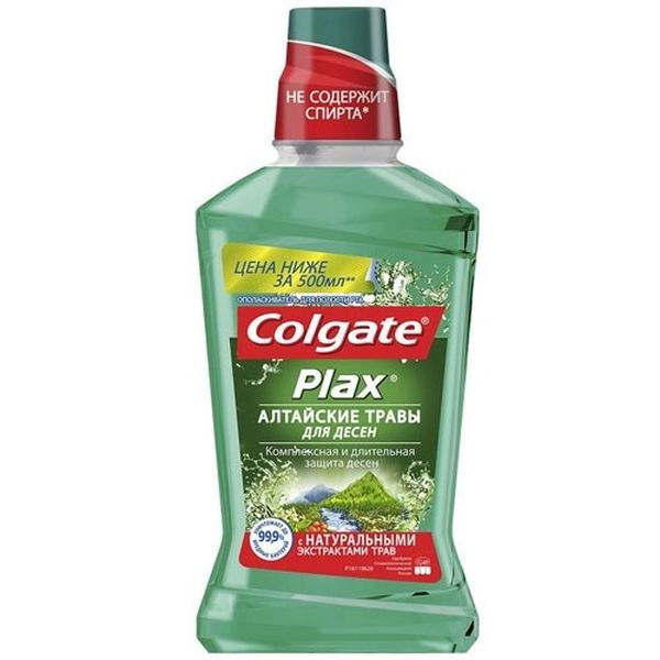 Ополаскиватель для полости рта Colgate "PLAX | Алтайские Травы", 500 мл. С экстрактами натуральных трав. Комплексная и длительная защита десен. Освежает дыхание надолго. 12 часовая защита от бактерий и зубного налета. Используйте 2 раза в день после чистки зубов, легко проникает в труднодоступные для зубной пасты и зубной щетки участки полости рта и смывает часть микробов и зубного налета. ПРИМЕНЕНИЕ: Наполните половину колпачка и тщательно прополощите рот в течение 30 секунд. Не глотать.