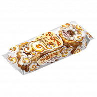 Мука пшеничная высшего сорта, крем варёная сгущёнка: начинка "Классика" со вкусом сгущёнки варёной (сахар, вода, патока крахмальная, пальмовое масло, молоко сухое обезжиренное, сухая молочная сыворотка, стабилизаторы: дикрахмалфосфат оксипропилированный, пектин, цитрат натрия; консервант сорбат калия, соль, ароматизатор "Сливки"), сахар, масло пальмовое рафинированное отбеленное дезодорированное (рафинированное дезодорированное пальмовое масло, антиокислители: бутилгидроксианизол, бутилгидрокситолуол), влагоудерживающий агент сорбитовый сироп, глюкозный сироп, глазурь кондитерская белая (сахар, заменитель масла какао лауринового типа, ароматизатор «Ванилин», регулятор кислотности кислота лимонная, соль), продукты яичные, крахмал кукурузный, сыворотка молочная сухая, разрыхлитель карбонат аммония, соль, разрыхлитель гидрокарбонат натрия, ароматизаторы: "Варёное сгущённое молоко", "Сливки"; регулятор кислотности кислота лимонная.