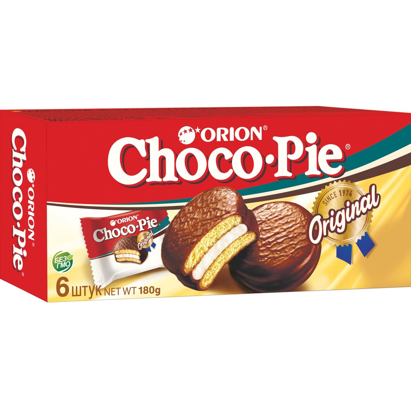 Пирожное Orion "Choco Pie" подходит в качестве десерта к чаю и кофе. Нежный бисквит с прослойкой из суфле покрыт шоколадной глазурью. Каждое пирожное в представлено индивидуальной упаковке. В картонной коробке содержится 6 штук. Вес — 180 г. Пищевая ценность на 100 гр. продукта: жиры 16,1 г., белки 4 г, углеводы70,5 г. Энергетическая ценность на 100 гр. продукта: 44 Ккал. Срок годности: 12 мес.
