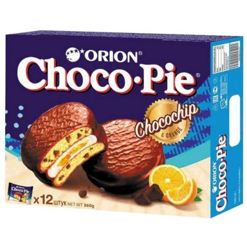 Пирожные бисквитные Orion "Choco Pie Chocochip | Апельсин-Шоколад", в глазури, 30 г х 12 шт, 360 г