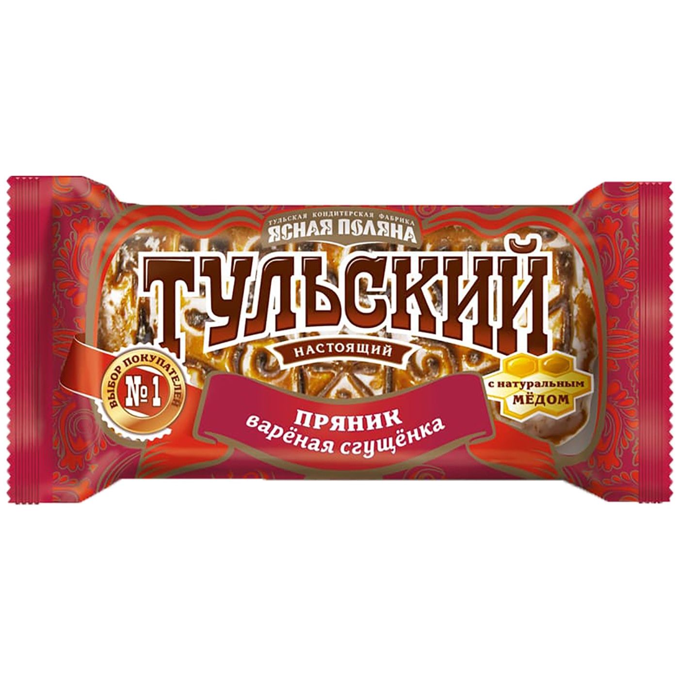 Настоящий Тульский пряник от фабрики "Ясная поляна" - фирменная сладость Тульской области. Знаменитый печатный пряник, покрытый тонкой сахарной глазурью. Ароматный мякиш с начинкой из уникальной российской сладости - вареной сгущенки. Идеальное сочетание пряничного теста и карамельно-сливочного вкуса начинки.
