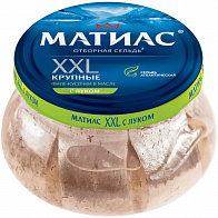 Селедочка с луком и укропом - классика! Советуем подавать эту нежную рыбку с пикантным вкусом к отварному молодому картофелю с вологодским маслом. Также эта сельдь подойдет для салатов: она уже острая и ароматная! Особенности рыбы, которая продается под маркой "Матиас", существенно отличают продукт от других. Рыба "Матиас" - нежная, с приятным ароматом, в меру соленая. Современные технологии позволяют сохранять все вкусы и ароматы натуральной рыбы. Состав: филе сельди, масло подсолнечное или рапсовое, лук, соль, укроп, регуляторы кислотности: винная, лимонная, уксусная кислоты, усилитель вкуса и аромата глутамат натрия, консерванты: бензоат натрия, сорбат калия, Е223: подсластитель сахарин.