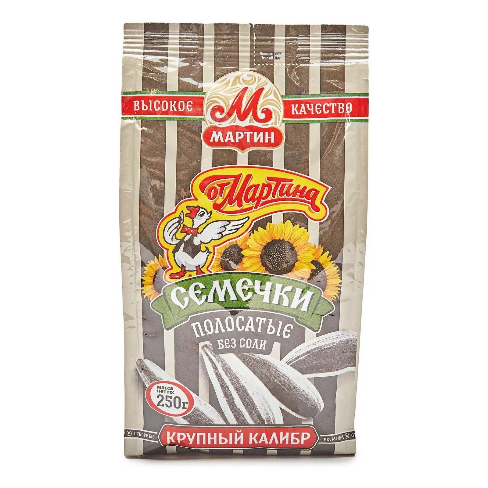 Семечки отборные обжаренные От Мартина Премиум "Полосатые" без соли — одна из самых интересных вариаций данного продукта исключительного по своей пользе и вкусу! Имея идеальное сочетание белков, жиров и углеводов, полосатые семечки отличаются от традиционных черных и по своим свойствам. Они не только более крупные, но и имеют во вкусе легкие ореховые ноты.