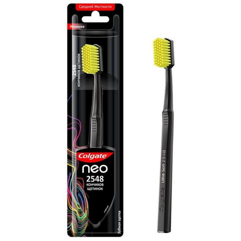 Новая зубная щетка Colgate Neo – это стильная новинка 2020 года в премиальном сегменте. Щетинки с высокой плотностью предназначены для бережной чистки зубов и удаления пятен на эмали. Зубная щетка Colgate Neo-это понятно, красочно, привлекательно и премиально! 2548 кончиков щетинок. Очищение эмали от налета и пятен. Минималистичный дизайн ручки. 6 вариантов цветовых комбинаций. Средняя жесткость щетины. Твой стиль! Твоя улыбка! Способ применения: Стоматологи и гигиенисты рекомендуют менять зубную щетку каждые 3 месяца. Срок годности не ограничен.