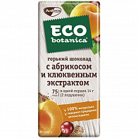 Натуральный темный шоколад Eco Botanica с крупными кусочками спелых абрикосов и экстрактом клюквы – необычное сочетание вкусов для любителей эко-сладостей.