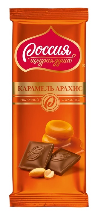 Шоколад молочный Россия - щедрая душа! "Карамель-Арахис", 17 шт по 90 г