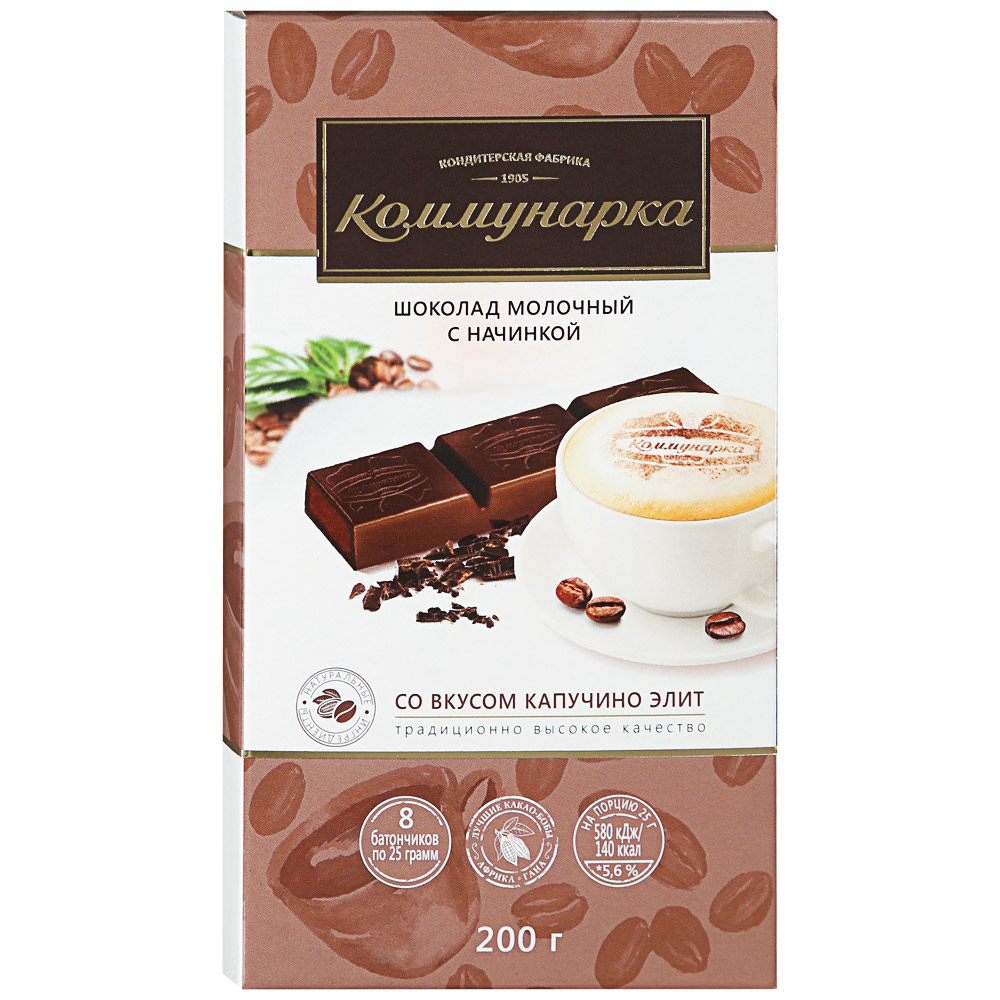 Шоколад молочный с начинкой Коммунарка "Со вкусом капучино Элит", 200 г