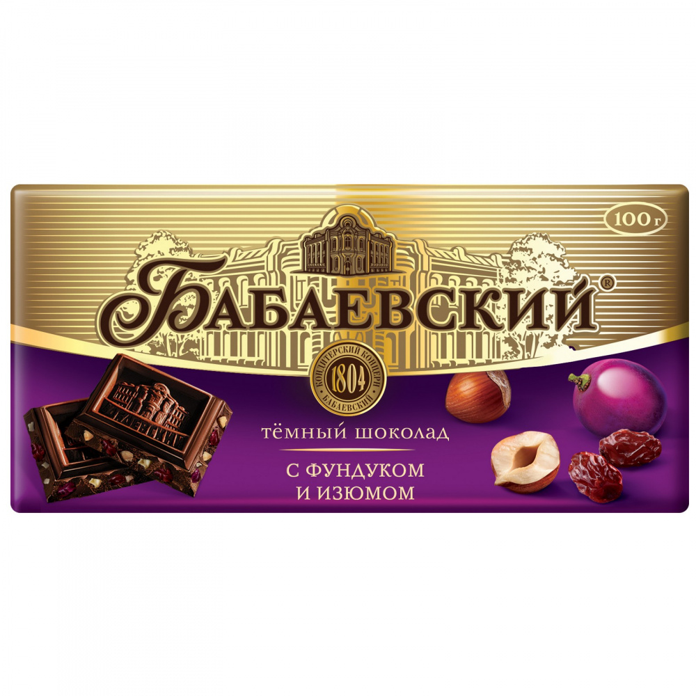 Шоколад темный Бабаевский "Фундук и изюм", 100 г