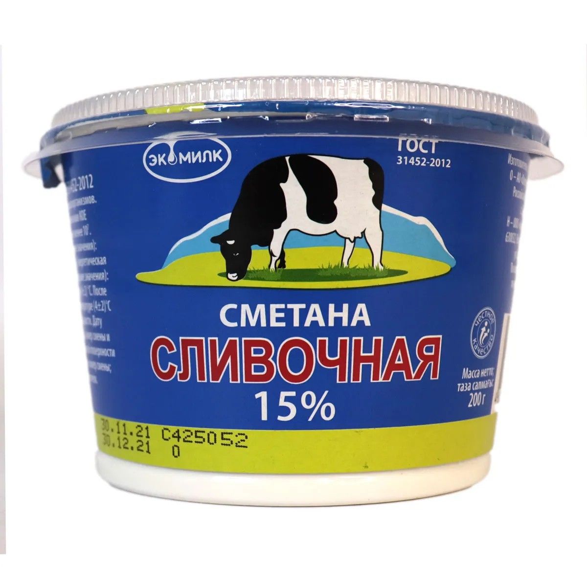 Сметана Экомилк "Сливочная", 15%, 180 г