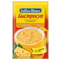 Крем-супы Gallina Blanca включают натуральные травы и специи, без добавления глутамата натрия, ГМО, синтетических красителей, искусственных консервантов и пальмового масла. Инновационная упаковка 2 в 1 позволяет добавить гренки по своему вкусу в начале вместе с супом или в конце, чтобы они оставались хрустящими. Готово за 1 минуту! Продукт может содержать следы сои, яиц и рыбы. Благодаря кремовой консистенции сырный суп-пюре легко усваивается и дарит ощущение сытости, а его нежный, мягкий вкус и аромат никого не оставят равнодушным!
