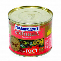 Свинина тушеная, ГОСТ, 525 г. Состав: свинина, лук, соль, специи, лавровый лист. Пищевая ценность на 100 г: белок 13,0 г, жир 32,0 г, углеводы 0 г. Энергетическая ценность: 340 ккал. Массовая доля мяса и жира - не менее 59%, массовая доля жира не более 35%. Перед употреблением разогреть. Хранить при температуре от 0'C до +20'C. Срок годности: 3 года.