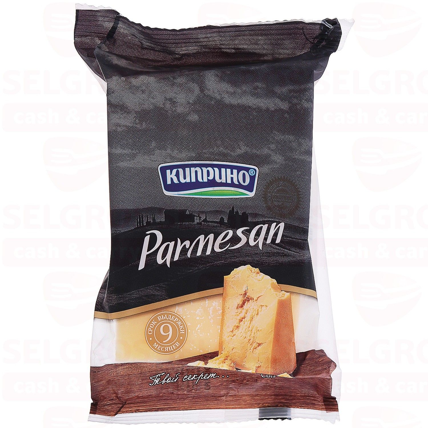 Сыр "Parmesan" торговой марки "Киприно" – твердый сыр с итальянскими корнями. Срок созревания данного сыра – 9 месяцев, благодаря чему он имеет плотную консистенцию без рисунка, пикантный вкус и глубокий аромат с нотками лесного ореха. "Пармезан" употребляется как самостоятельное блюдо или используется в виде добавок к пасте, пицце, супам и салатам. Упаковка: до порционирования - парафин, полимерное покрытие. Порционированные куски упакованы во Flow-pack. Flow-pack – это трехшовные пакеты из многослойного полипропилена с одним продольным и двумя поперечными сварными швами. Литры молока на 1 кг -12. Вкус: Выраженный пряный вкус.