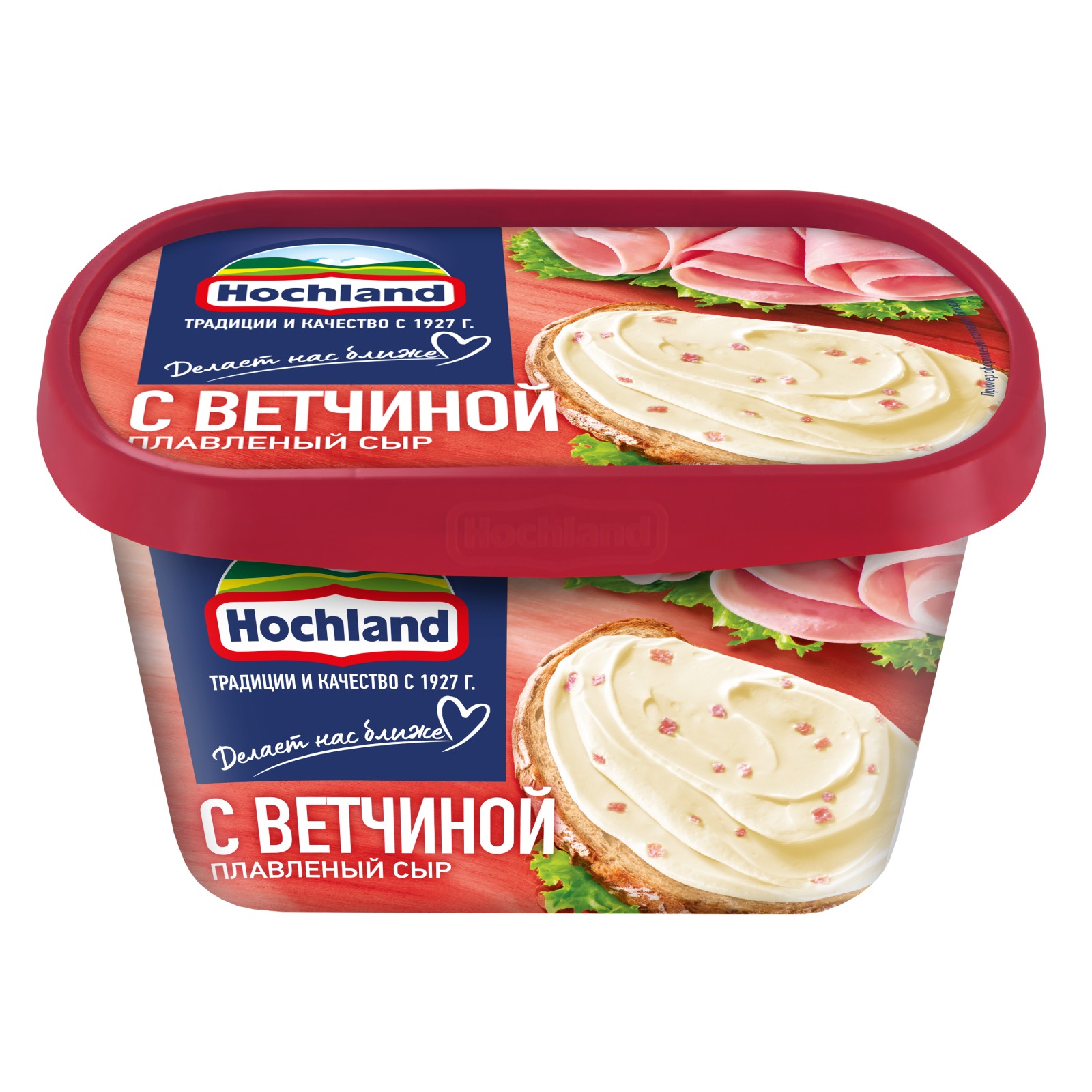 Сыр плавленый Hochland с ветчиной — это сочетание нежного тающего плавленого сыра и классической ветчины. В плавленом сыре Hochland с ветчиной не просто много, а очень много кусочков настоящей высококачественной ветчины, которая измельчается прямо перед добавлением в плавленый сыр. Благодаря выразительному вкусу и тонкому аромату, в котором смешались оттенки нежного сыра и сочной ветчины, продукт идеально дополняет блюда с овощами, супы, вторые блюда и гарниры. С ним также можно сделать насыщенный соус для картофеля или спагетти с душистой зеленью и сливками, превратив повседневную пасту в изысканное блюдо. Упаковывается продукт в эргономичную пластиковую коробочку, удобную в использовании и хранении. А экономичного формата 400 грамм хватит и для всей семьи, и для самых смелых кулинарных экспериментов. Побалуйте себя ярким насыщенным вкусом любимого плавленого сыра Hochland с ветчиной!