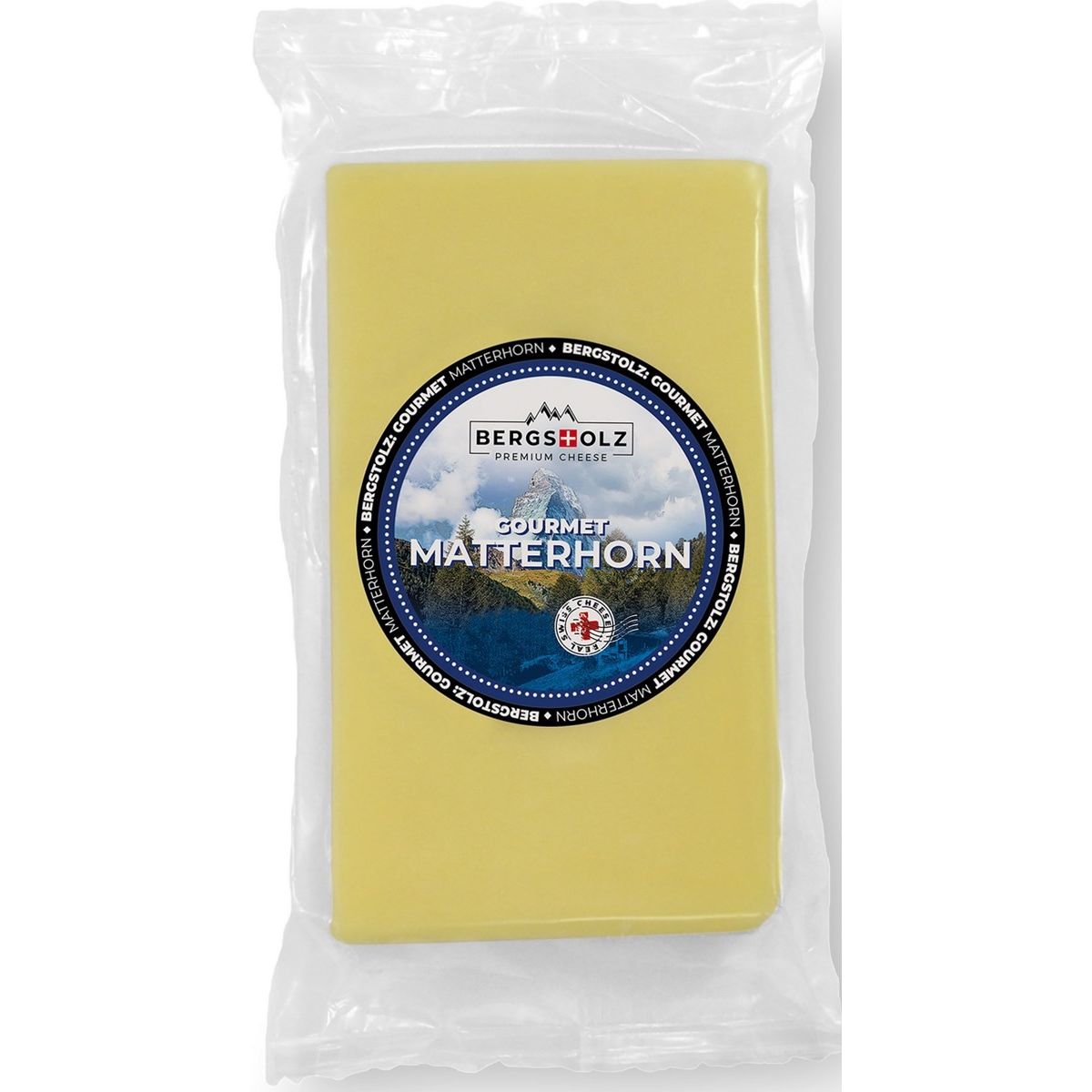 Сыр Bergstolz "Matterhorn" 6 месяцев выдержки 50%, 100 г БЗМЖ (без заменителя молочного жира) - продукт средней плотности, выделяется ярким вкусом и ароматом. Применяется в кулинарии для приготовления бутербродов или тостов, добавления в салаты, соусы, горячие блюда. Натертым сыром можно посыпать мясо или рыбу перед запеканием, чтобы получить аппетитную золотистую корочку. Жирность составляет 50%. В составе швейцарского сыра содержится большое количество кальция, железа, фосфора и витаминов С, Е, А, группы В, которые необходимы для нормальной работы организма. При регулярном употреблении продукта укрепляется иммунитет, стабилизируется работа желудочно-кишечного тракта, улучшается состояние кожи, выводятся токсины из организма.